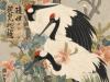 Flying Red-Crowned Cranes Wall Art – Minimalist Japanese Bird Painting on Black, Elegant Wildlife Print for Modern Zen Decor (Digital Download)