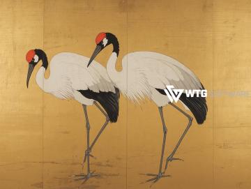 japan crane, gold print, crane decor, asian style, bird panel, zen art, wall poster, print file, digital art, home decor, art panel, crane pair, gold decor