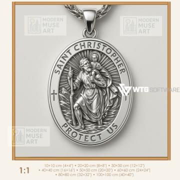 Inspired by the iconic necklace seen in Mission Impossible, this Saint Christopher pendant symbolizes courage, protection, and faith. Meticulously crafted in radiant silver, it depicts Saint Christopher carrying the Christ Child, a timeless emblem for travelers and believers. Perfect as a meaningful gift or collectible, this polished medal brings cinematic elegance and spiritual energy together in one powerful design.