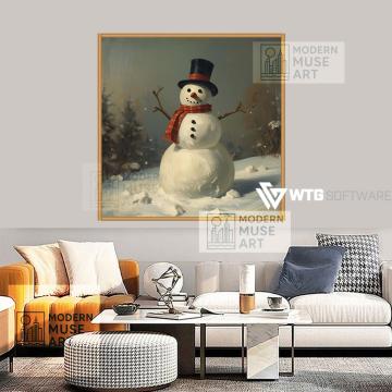 This downloadable wall art captures a charming snowman with a red scarf and top hat, standing joyfully in a snowy winter landscape. Perfect for Christmas and holiday decor, this printable artwork brings warmth and seasonal cheer to any space. Ideal for living rooms, offices, or cozy winter displays, this high-quality digital download offers instant festive charm. Add a touch of Christmas spirit with this delightful snowman wall art