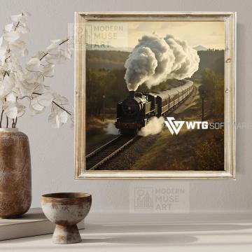 This vintage steam train wall art captures the golden beauty of a sunset railway journey through scenic countryside hills. The warm tones, dramatic steam clouds, and nostalgic atmosphere evoke a sense of adventure and timeless travel. Perfect as a printable download, this high-quality digital artwork adds depth and elegance to any room, making it an ideal piece of downloadable wall art for home, office, or gift décor